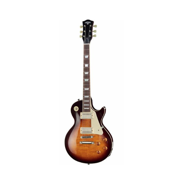 Guitare électrique Corps 2 pièces en acajou Table collée 2 pièces en érable Manche en acajou Touche en palissandre (Dalbergia latifolia) Repères trapézoïdes en nacre Filets de corps et de manche Mécaniques Kluson avec boutons tulipe Micros double bobinage Amber Spirit of 59 2 réglages de volume 2 réglages de tonalité Sélecteur de micro Potentiomètre CTS TVT Custom Cordes D'Addario XL Lite 0.10 Finition NC Couleur: Faded Teaburst Aged Livrée en étui Maybach
